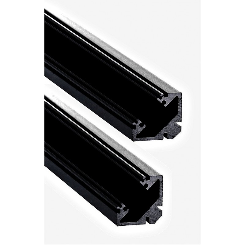Perfil Angulo de aluminio anodizado Negro de alta calidad, de 19x19mm. PA1919AN6M, 6 mts (2 barras 3 Metros). Se puede escoger el tipo de difusor entre opal, glaseado o transparente. Para instalar tira de LED.