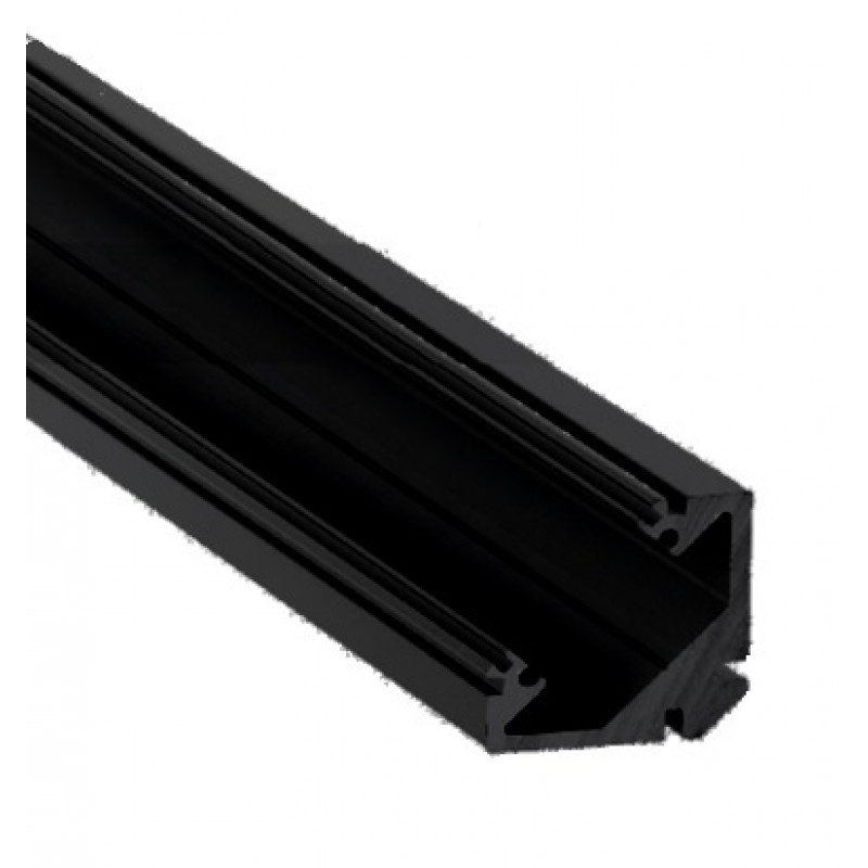 Perfil Angulo de aluminio anodizado Negro de alta calidad, de 22x22mm. PA2222AN2M. Barra de 2 metros. Se puede escoger el tipo de difusor entre opal, glaseado, transparente ó Negro. Para instalar tira de LED.