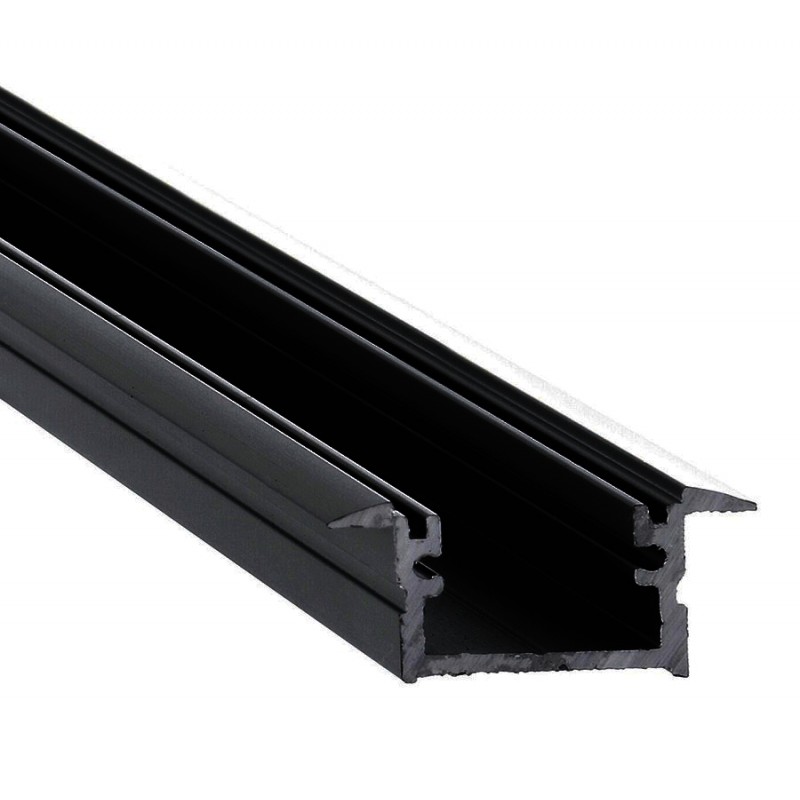 Perfil Empotrar de aluminio anodizado Negro de alta calidad, de 24x12mm. PE2412AN. Barra de 2 metros. Se puede escoger el tipo de difusor entreNegro, opal, glaseado o transparente. Para instalar tira de LED.