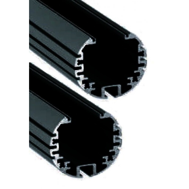 Perfil Redondo de aluminio anodizado Negro de alta calidad, de 39mm. PR3939AN6M, 6mts (2 tramos de 3 Metros). Se puede escoger el tipo de difusor entre opal, glaseado, transparente ó Negro. Para instalar tira de LED.