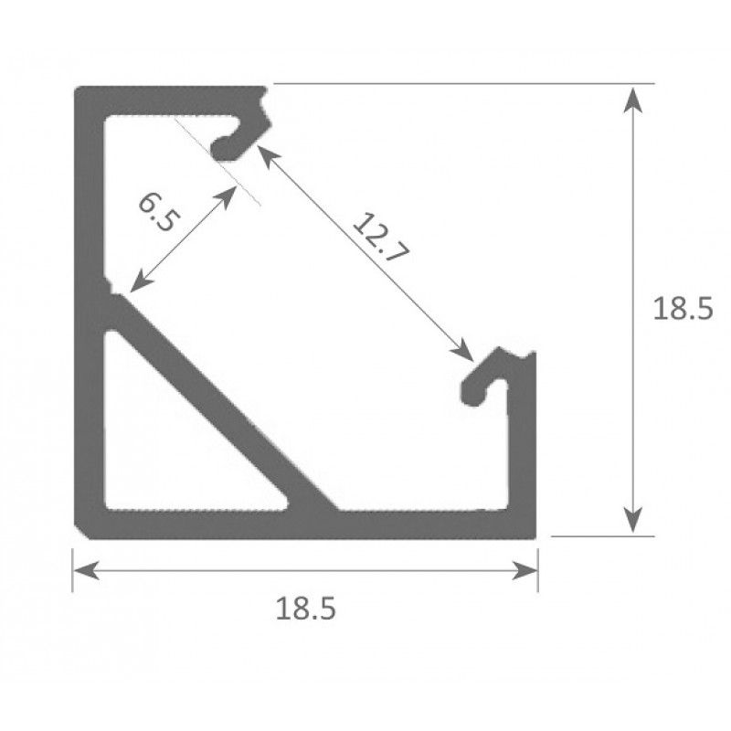 Perfil de aluminio Anodizado Angulo Blanco 18x18mm para tiras LED, barra de 2 Metros.