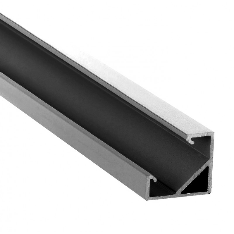 Perfil de aluminio Anodizado Angulo Plata 18x18mm. para tiras LED, barra 2 mts.