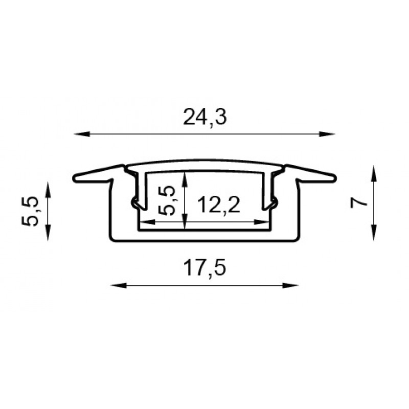 Perfil de aluminio de Empotrar LINE Blanco de 24x7mm. Barra de 2 metros PE2407B2M.