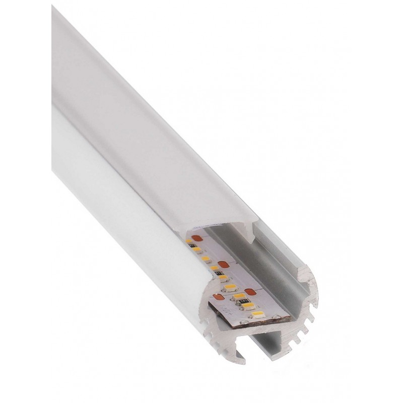 Perfil Aluminio anodizado Redondo 21x17mm. para tiras LED, barra 2 Metros -completo- PR2117ABK2M. En color Blanco. Se puede escoger el tipo de difusor entre glaseado, opal o transparente.