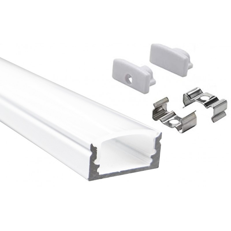 El precio incluye: Tira perfil, 1 tapa final, 1 tapa final con salida cable, 2 grapas fijación y difusor.