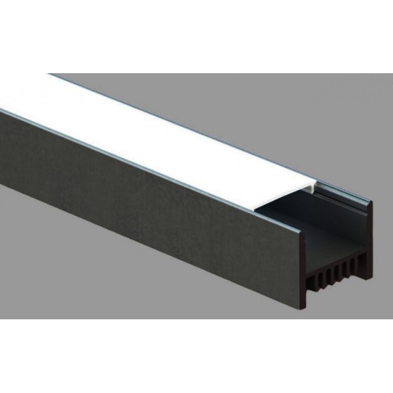 Perfil de aluminio Negro Superficie 28,6x23,4mm. para tiras LED, barra 3 metros. Para tira LED. Apto para tiras de led con una potencia no superior a 45W/m