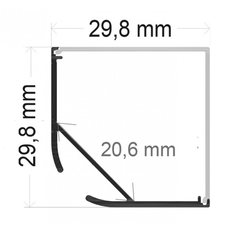 Perfil de aluminio en ángulo30x30mm. C para tiras LED de hasta 20mm, barra 2 Metros -Completo- PA3030ECDRK2M.