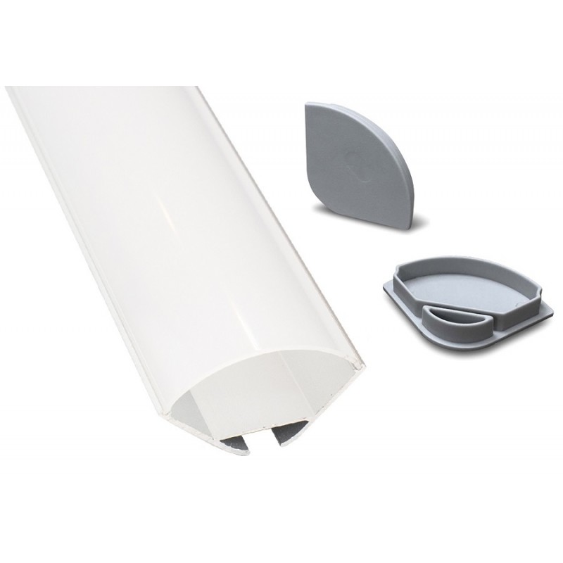 El suministro incluye: 1 perfil de 2mts, 1 Difusor de 2mts, 2 tapas finales.