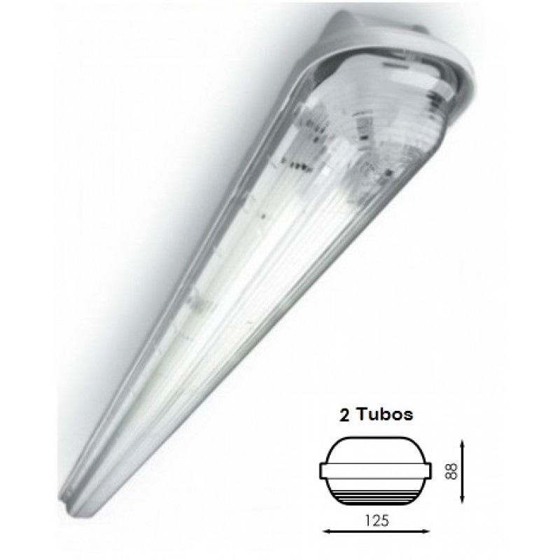 Pantalla estanca PEV258P1C para instalacion de 2 tubos LED de 1500mm sin necesidad de modificar su cableado. Con dos conexiones por un extremo del tubo.